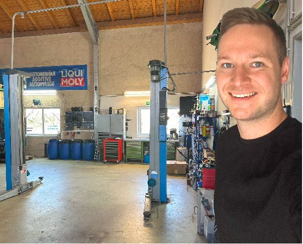 Mein Name ist Daniel Lorenz, ich bin 30 Jahre alt und seit einem Jahr stolzer Inhaber der KFZ-Werkstatt Salmdorf. Meine berufliche Laufbahn begann mit einer Ausbildung in der Werkstatt von Mercedes-Benz, gefolgt von einer wertvollen Zeit in einer freien KFZ-Werkstatt. Anschließend habe ich erfolgreich den Meisterkurs abgeschlossen.